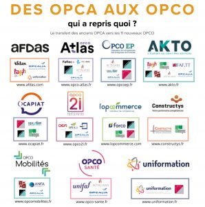 Depuis le 1er avril 2019, 11 opérateurs de compétences (Opco – anciennement OPCA) sont sur le pont pour soutenir la formation professionnelle continue (FPC). Ces organismes ont pour mission de financer l’apprentissage, d’aider les branches à bâtir des certifications pros, et d’accompagner les PME pour qu’elles voient plus clair dans leurs besoins en formation. ils ont un rôle de conseiller et d’accompagnement à l’optimisation et la mise en oeuvre de différents dispositifs de financement de la FPC : plan de développement des compétences (PDC), actions de branches, AFEST, alternance, ect…